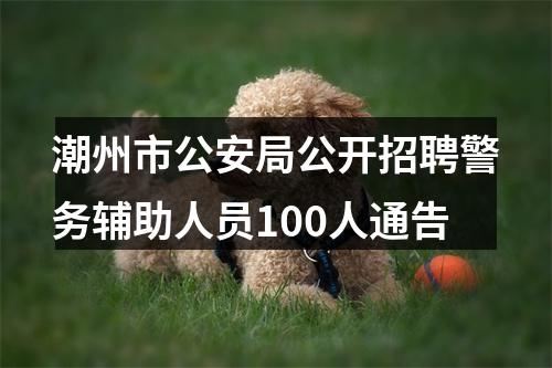 根据工作需要,潮州市公安局决定面向社会公开招聘警务辅助人员100名,其中男92名、女8名。现将有关招聘事项通告如下: