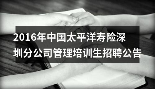 【2016年中国太平洋寿险深圳分公司管理培训生招聘公告】相关岗位: