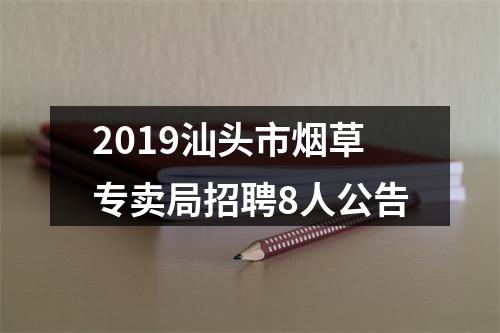 2019年汕头市烟草专卖局(公司)拟向社会公开招聘8人,招聘岗位如下: