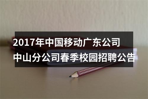 中国移动广东公司中山分公司(简称“中山移动”)2017年春季校园招聘工作开始啦!期待您的参与!一、招聘对象:2016年及2017年全日制普通高校本科及以上学历的应届毕业生。
