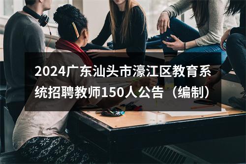 笔试课程 在线咨询 为进一步优化我区教师队伍结构,推进我区教育高质量发展,根据《广东省事业单位公开招聘人员办法》(广东省人民政府令第301号)等有关规定,结合我区实际,汕头市濠江区教育系统公开招聘教师、幼儿园正、副园长150名,现将有关事项公告如下: