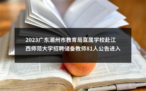 原标题:2023年广东省潮州市教育局直属学校赴江西师范大学招聘储备教师公告
