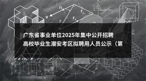 原标题:广东省事业单位2025年集中公开招聘高校毕业生潮安考区拟聘用人员公示(第二批)